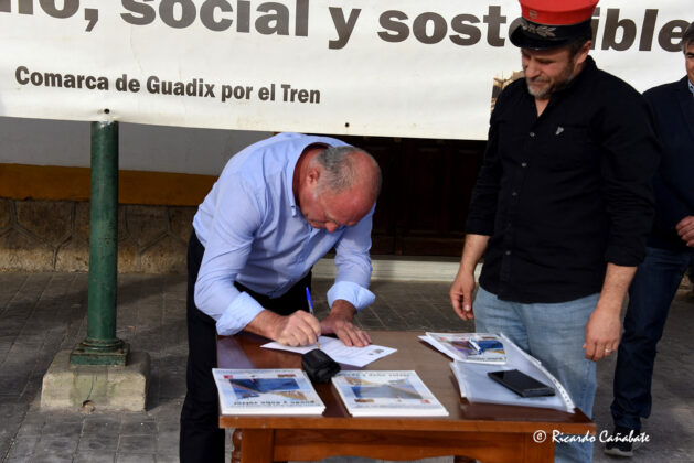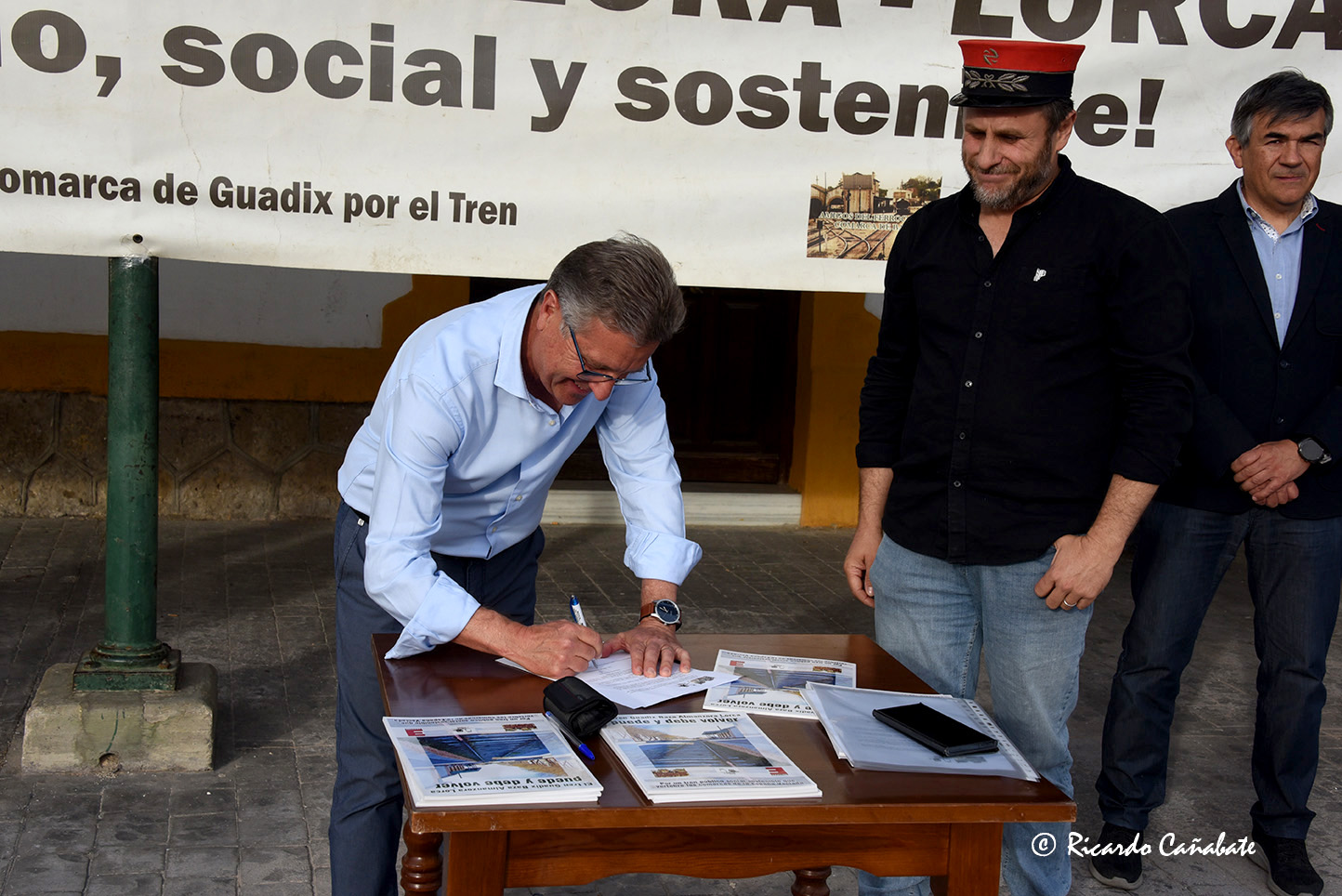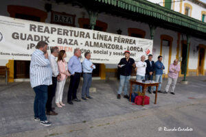 Candidaturas políticas y organizaciones empresariales firman por escrito un compromiso por la vuelta del tren Guadix Baza Almanzora Lorca. La amarga efeméride de los 14.000 días sin el tren Guadix – Baza – Almanzora – Lorca ha dado lugar a un compromiso para la lucha por su vuelta, que ha sido firmado literalmente por las distintas candidaturas políticas que se presentan a las elecciones municipales en Baza (PSOE, PP, IU, VOX y Compromiso por Baza), así como la Asociación de Empresarios del Altiplano-Confederación Granadina de Empresarios.