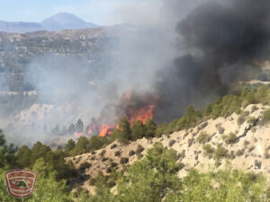El mes de mayo se iniciaba con una actuación este lunes en el incendio forestal declarado en el paraje del Cerro del Águila en Benamaurel. El aviso se recibía en el parque bastetano a las 17.02h y se activaba inmediatamente el servicio para llegar a este terreno de difícil acceso para vehículos. La actuación se inició procediendo a la extinción del frente del incendio a su llegada al camino para posteriormente extinguir los flancos. Una vez controlado el fuego, se incorporaron a la actuación medios del Infoca junto a la dotación de Bomberos equipados con Bomba Forestal Pesada, Unidad de Mando y Transporte y tres efectivos. El servicio se dio por finalizado por parte de los Bomberos bastetanos a las 19.37h, quedando en el lugar medios de Infoca.