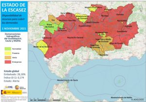 Esta situación excepcional afecta a 10 UTE y un subsistema, de las 23 UTE de las que se compone la cuenca, lo que supone el 80% de la reserva total de la cuenca. Entre ellas destaca el Sistema de Regulación General, cuyos 17 embalses, entre ellos el más importante de Granada, Negratín, pueden albergar hasta 5.721 hm³, el 70% de la capacidad de embalsado del Guadalquivir.