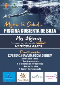La piscina cubierta aumenta los servicios para ganar nuevos usuarios y ofrecer una experiencia de bienestar emitiendo cien bonos gratuitos para conocer sus servicios. La piscina cubierta municipal de Baza inicia nueva temporada ampliando sus servicios para convertirse en un espacio dedicado a la salud y el bienestar de las personas, capaz de satisfacer las demandas de ocio, deporte, prevención de enfermedades y mejora de determinadas dolencias físicas de los usuarios.
