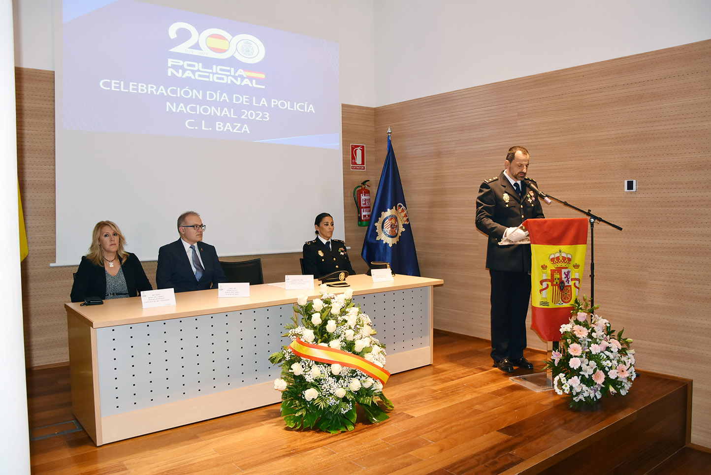 La Policía Nacional de la Comisaría de Baza celebró el día de sus santos patronos, junto a una importante representación del gobierno municipal y del sector empresarial de la ciudad. Como viene siendo tradicional en nuestra ciudad, en la mañana del lunes 2 de octubre se celebraron los actos de homenaje a los Santos Ángeles Custodios, patronos de la Policía Nacional. Desde la Comisaría bastetana se organizaron una serie de actividades en las que los efectivos policiales estuvieron acompañados por una amplia representación del gobierno municipal, con el alcalde de Baza, Pedro J. Ramos, a la cabeza, así como por un nutrido grupo de empresarios de la ciudad, entre los que se encontraba el presidente de la Asociación de Empresarios del Altiplano, José Antonio Lucha. Entre los asistentes a las distintas convocatorias estuvieron representantes de otras fuerzas de seguridad y algunos directivos del Hospital de Baza y del Área de Gestión Sanitaria Nordeste de Granada.