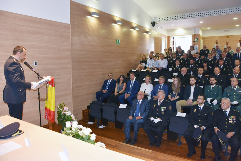 A continuación se desarrolló la entrega de condecoraciones. En este caso se concedió la Medalla Cruz Blanca al mérito policial al Subinspector D.M.F.; la Medalla a la permanencia y trayectoria en 20 años de servicio al policía D.A.G.; y dos reconocimientos específicos a los jubilados del año en curso: al oficial de policía J.R.P. y al policía J.L.M.G.