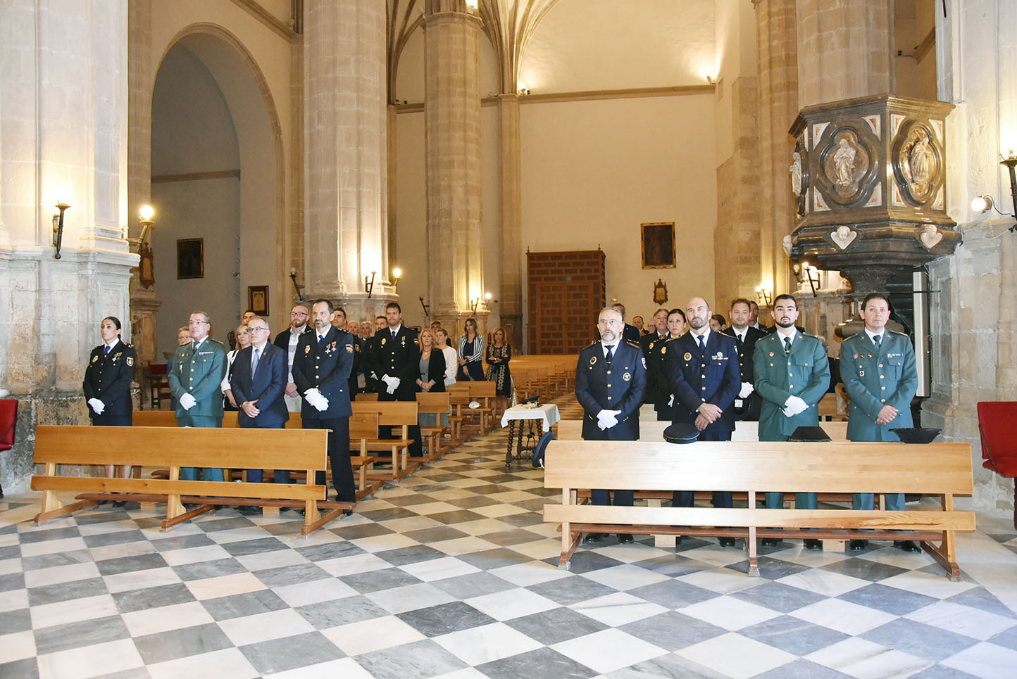 Al mediodía se inició la misa en honor de los patronos de la Policía Nacional, oficiada en la iglesia Mayor por su párroco titular, Manuel Millán, acompañado por otros sacerdotes del municipio. A su término, la comitiva se trasladó al salón de actos del Museo, donde se desarrolló el acto oficial.
