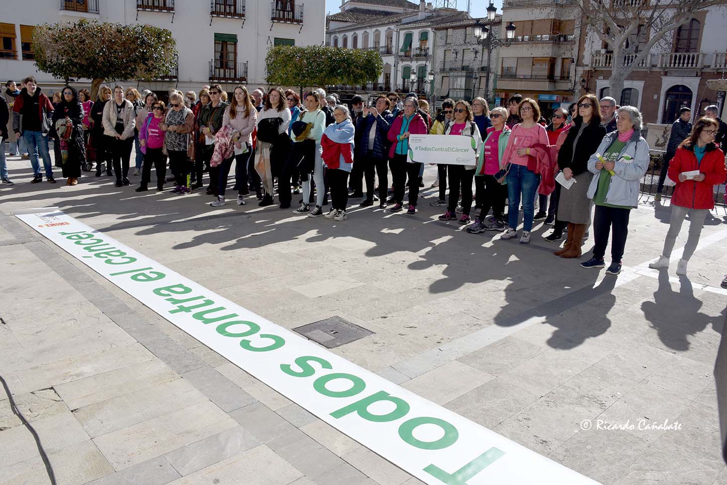 La Junta Local de la AECC de Baza conmemoraba ayer el Día Mundial Contra el Cáncer. Una conmemoración que se hacía con una concentración en la Plaza Mayor en la que estaban presentes miembros del Equipo de Gobierno del Ayuntamiento de Baza y ediles del Grupo Municipal Socialista, acompañando al presidente de la Junta Local de esta entidad en nuestra ciudad, cutos miembros confeccionaron pancartas alusivas a esta enfermedad y repartieron entre los asistentes información y pulseras verdes alusivas a este día. Entre los asistentes, un nutrido grupo de voluntarios de esta asociación, miembros de diferentes colectivos y ciudadanos particulares que quisieron sumar su apoyo a esta causa.
