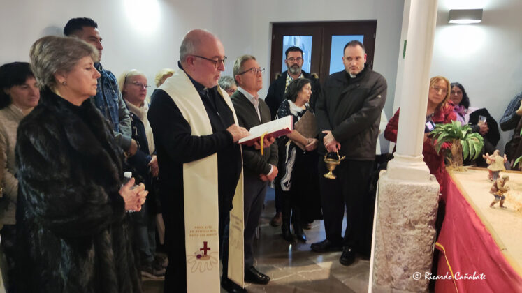 Seguidamente, el público que ocupaba el auditorio del Museo se trasladó al lugar donde está instalado el belén, para asistir a la bendición que oficiaba el párroco de la Iglesia Mayor, Manuel Millán, acompañado del vicario parroquial, Antonio David Pérez.
