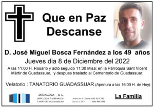 Su sepelio tendrá lugar mañana 8 de diciembre. A las once de la mañana, tendrá lugar un Rosario y a las 11,30 h. se oficiará una Misa en la parroquia Sant Vicent Màrtir de Guadassuar, tras lo que sus restos serán trasladados al cementerio de esta localidad valenciana.