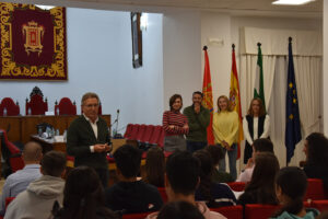 En su intervención de bienvenida, el alcalde, Manolo Gavilán, reflexionó sobre el nivel de crispación existente en el Parlamento y animó a los estudiantes a ser críticos y participativos, pero siempre desde el respeto, “porque en vosotros está el futuro”; y añadió que eso trata de conseguir siempre en el Ayuntamiento, “porque el respeto ha de estar por encima de todo”.  A continuación se conformó la mesa de edad y los diferentes concejales jóvenes juveniles fueron tomando posesión de sus cargos, para elegir después a la alcaldesa de esta sesión juvenil.