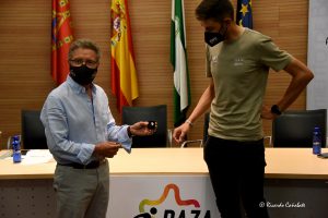 Ejercía de anfitrión el alcalde bastetano, Manolo Gavilán, y su concejal de deportes, Antonio Vallejo, a quienes acompañaban miembros de la Escuela de Ciclismo que lleva el nombre de nuestro corredor y del Club Ciclista BTT PAM. Gavilán habló en nombre de la Corporación, y por tanto “de todo el pueblo de Baza”, para desear lo mejor a este bastetano ilustre, del que todos estaban orgullosos de tener aquí, pero del que destacó la forma en que siempre lleva consigo el nombre de Baza.
