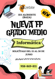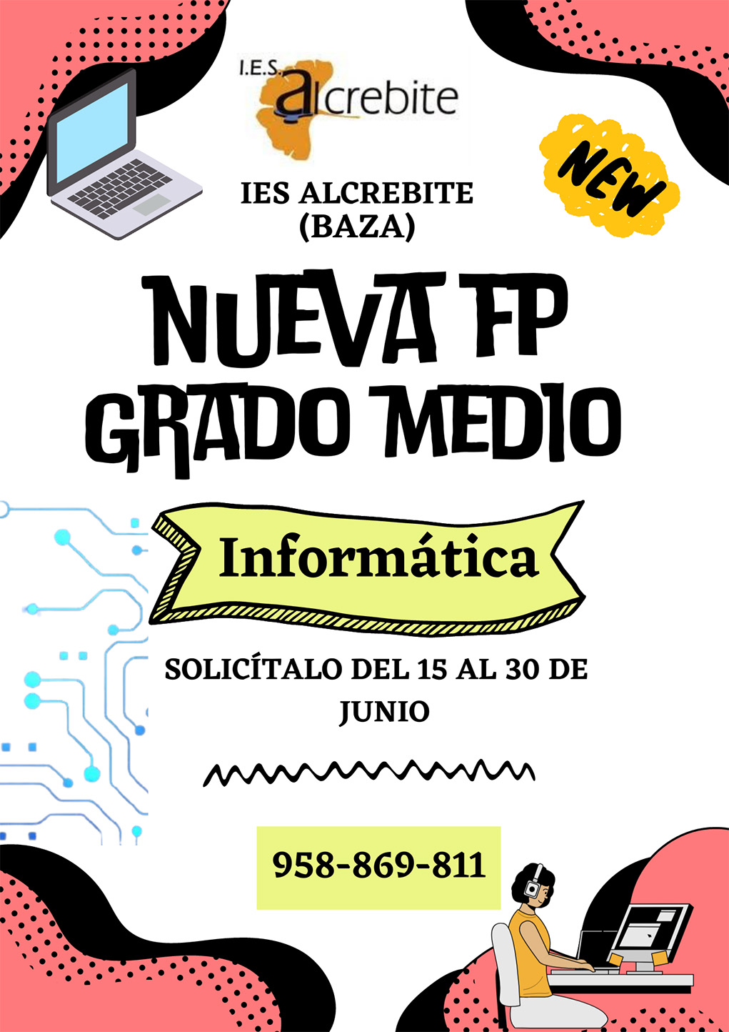 Así pues, y en beneficio de la juventud de la comarca, damos a conocer esta buena noticia para todas aquellas personas que quieran acceder a las posibilidades formativas que ofrece el Ciclo de Grado Medio de la Familia de Informática en el IES Alcrebite de Baza.