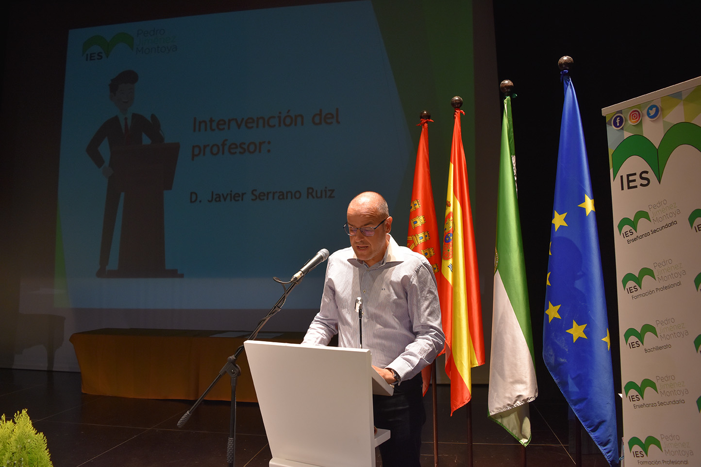 Siguieron las intervenciones de representantes de las familias con Alfonso Sánchez, padre de una alumna, y del profesorado, con Javier Serrano, profesor de matemáticas. Y la intervención, por parte de los alumnos, que fue alegre y divertida, a la vez que emotiva y que corrió a cargo de Miguel Martínez y de Pablo Carricondo.