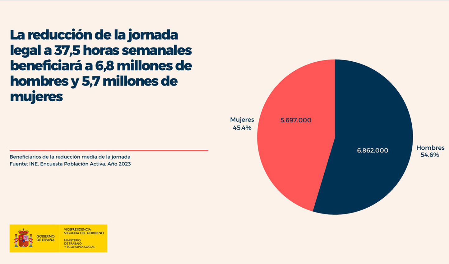 La norma inicia, de esta manera, su tramitación parlamentaria para que la jornada máxima legal sea de 37,5 horas semanales en cómputo anual tras más de cuatro décadas de vigencia de la establecida actualmente, de 40 horas semanales. Esta reducción permitirá que espacios ahora de trabajo reviertan en la vida tras una indudable evolución tecnológica y económica en nuestro país.