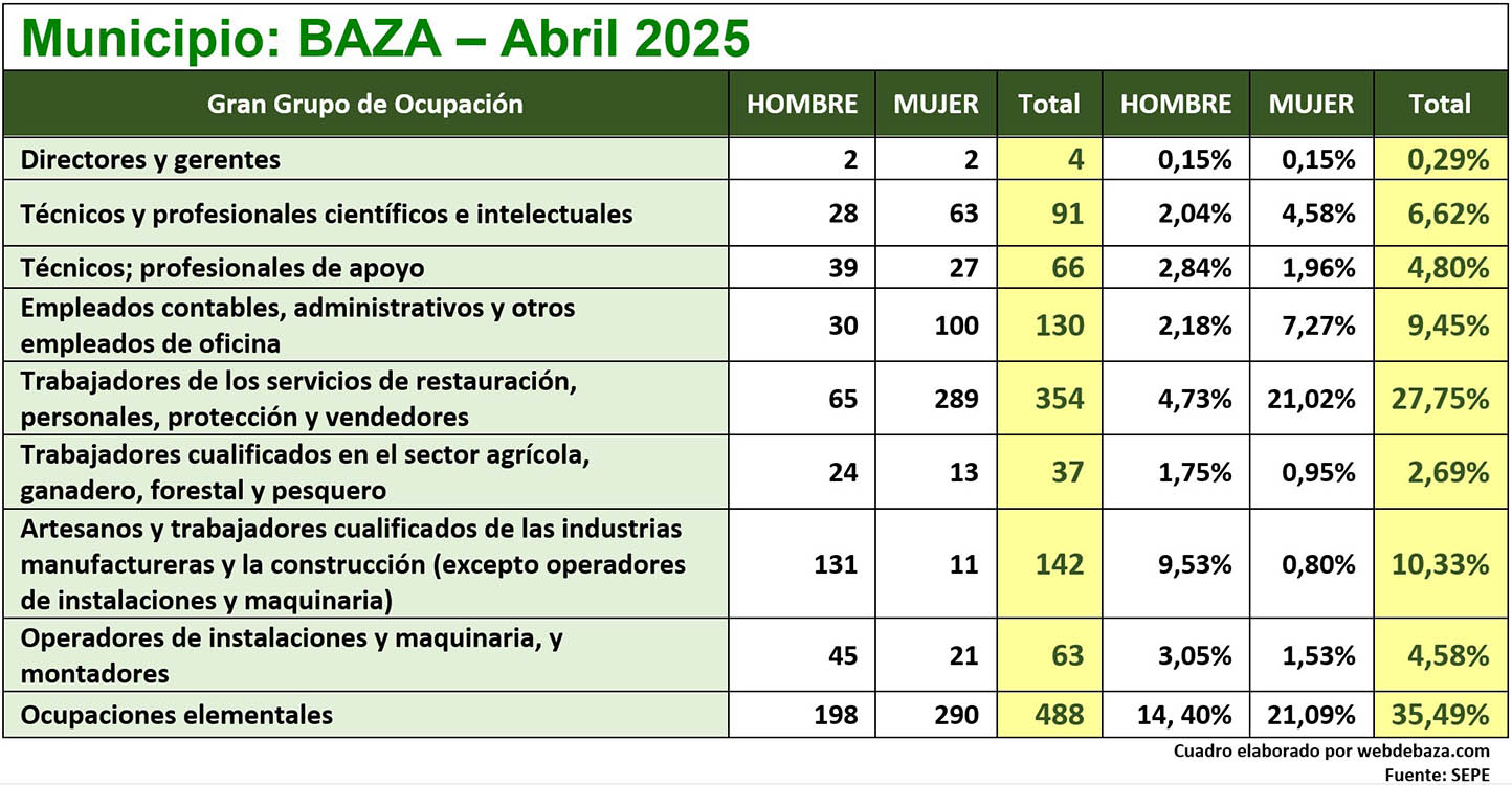 Una situación de la que su análisis detallado nos indica que, de estas 1.375 personas desempleadas en Baza, 558 son hombres y 816 son mujeres, a pesar de que ha sido una mensualidad que ha favorecido más el empleo femenino, que suele ser el más elevado de los últimos años. De hecho, mientras que el desempleo masculino disminuía en 22 personas, la ocupación femenina mejoró con 62 mujeres que pasaban a tener empleo. Importante también dejar constancia que la nueva cifra de parados, con respecto a la tasa de desempleo interanual, mejora en 148 personas, lo que igualmente confirma una notable mejora que esperamos conduzca a una mayor empleabilidad estacional de cara al verano y con la ilusión de que mantenga esa trayectoria en los meses sucesivos.