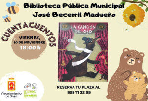 Por otro lado, recordar a los usuarios de la actividad de Cuentacuentos, que tiene lugar igualmente en la Biblioteca Municipal, tiene ya abierto el plazo para inscribirse en el cuentacuentos del viernes 10 de noviembre que, como siempre, se iniciará a partir de las seis de la tarde y teniendo que realizar la reserva previa de plaza, en el teléfono 958 712 299.