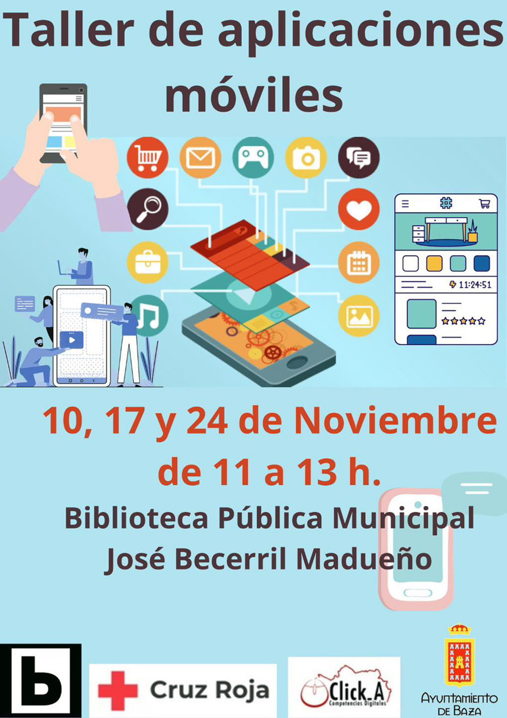 La Biblioteca Municipal acoge un taller de aplicaciones en el móvil los días 10, 17 y 24 de este mes, para el que precisa inscripción previa y continúa con los Cuentacuentos de los viernes. La Biblioteca Municipal de Baza ofrece un interesante taller para aprender a manejar las aplicaciones en el móvil, una herramienta cada vez más extendida en infinidad de servicios y recursos de nuestro día a día, para lo que se ha programado la realización de este taller, que tendrá lugar los próximos viernes 10, 17 y 24 de noviembre, en horario de 11:00 a 13:00 horas, en sus instalaciones.