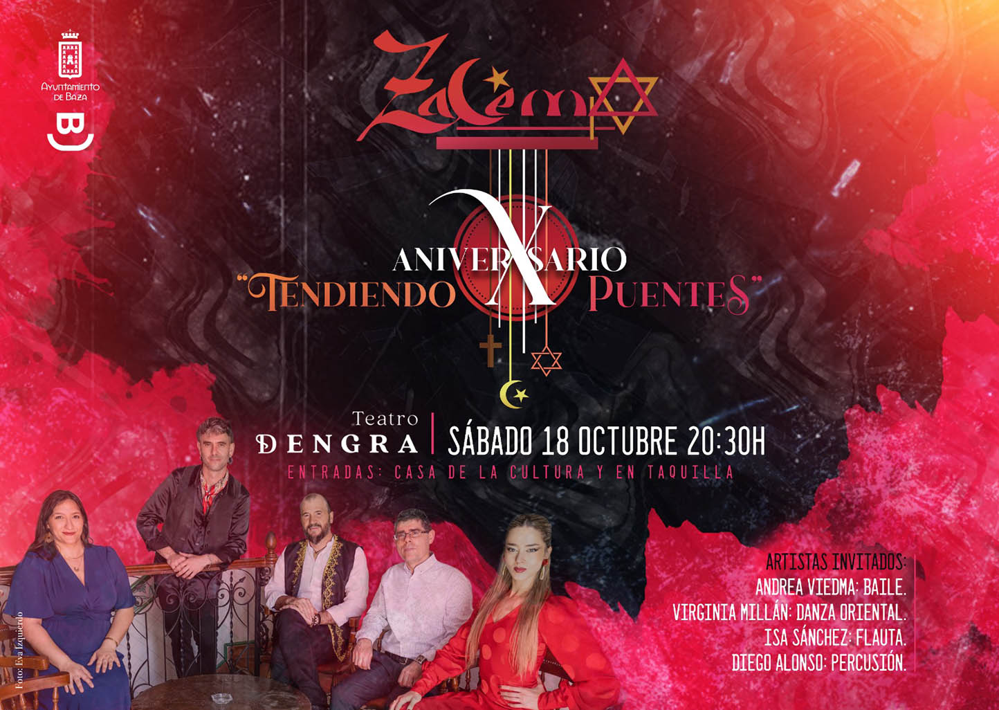 La celebración del X Aniversario de Zalema promete ser un encuentro artístico inolvidable, en el que el grupo estará acompañado por artistas invitados de gran calidad como Andrea Viedma (baile flamenco), Virginia Millán (danza oriental), Isa Sánchez (flauta) y Diego Alonso (percusión).