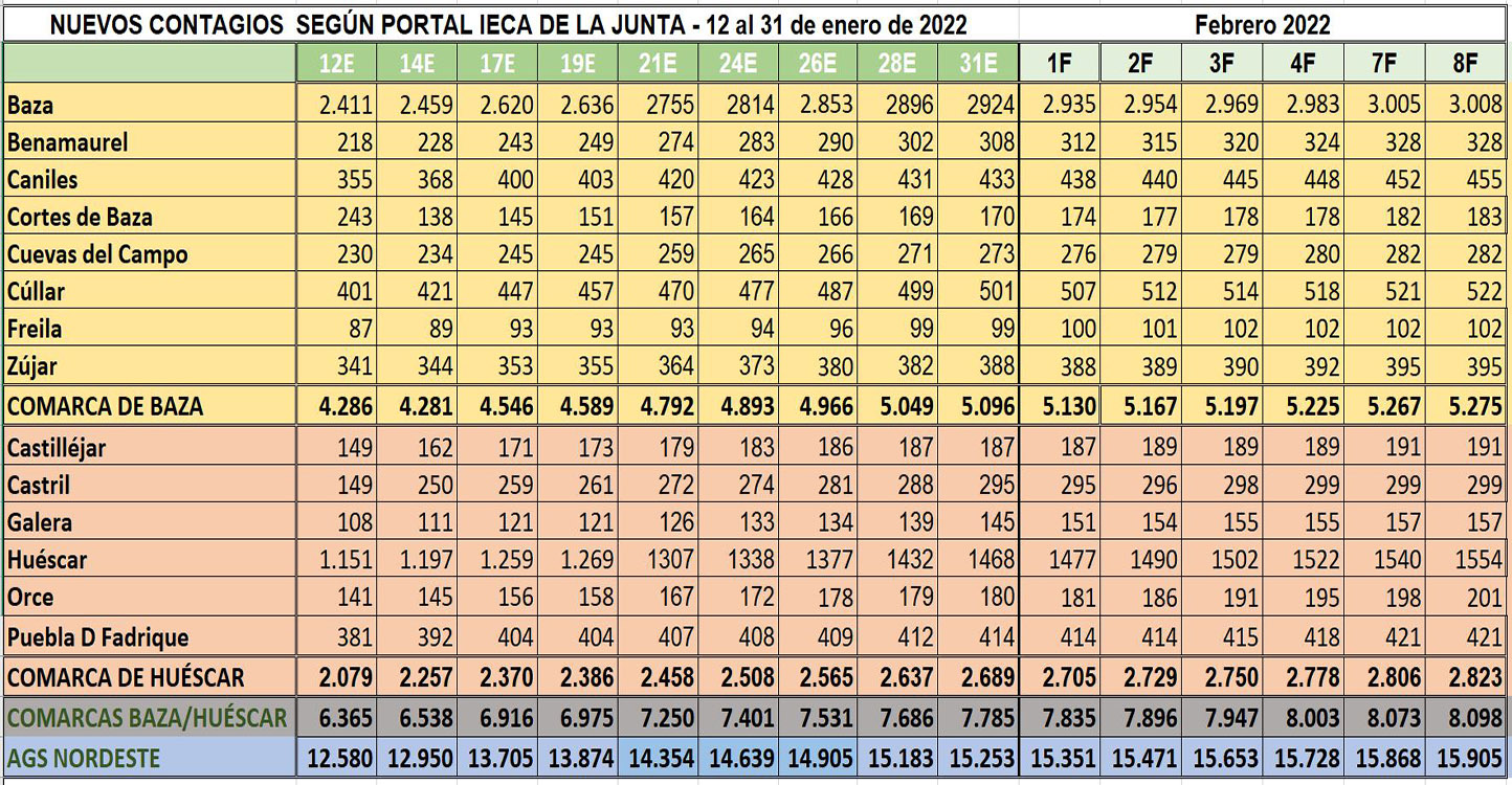 En cuanto al territorio del AGS Nordeste, en el que se unen estas dos comarcas a la de Guadix, fueron 30 los curados y se mantuvo en 3.738 los pacientes pendientes de recibir el alta. En este caso, además, con 37 nuevos contagios y 94 confirmados menos a 14 días, la tasa de incidencia bajaba 96,3 casos para situarse por debajo de los mil, por primera vez desde el pasado año, quedándose en 946,7 por 100.000 habitantes, mientras que a 7 días bajan los casos en 64 y la tasa en 65,6, totalizando 291 casos que, como en las dos comarcas norteñas, auguran nuevos descensos en días sucesivos.