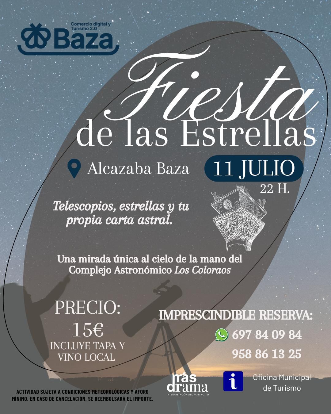 La Alcazaba de Baza da la bienvenida al “Turismo de verano” con la mágica “Fiesta de las Estrellas”. El próximo viernes 11 de julio, a las 10 de la noche, dará comienzo la programación cultural de la campaña “Turismo de verano en Baza” con una propuesta tan original como sugerente: la “Fiesta de las Estrellas”, que tendrá lugar en la Alcazaba bastetana.
