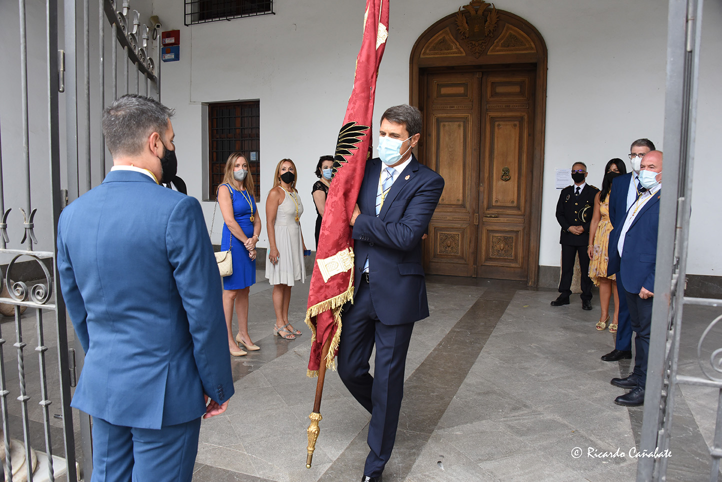 Quienes sí ocupaban sus asientos en el templo eran los Ayuntamientos de Guadix y Baza, presididos por sus respectivos alcaldes, Jesús Lorente y Pedro Fernández, a los que acompañaban un número más reducido del habitual en otros años, si bien el de Baza iba bajo mazas y con el Pendón Real, que esta vez portaba el concejal José Antonio López Cañadas.