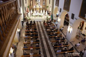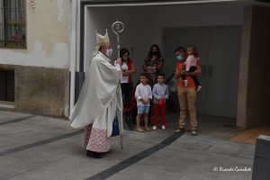 Un templo que cuidó al máximos las medidas a adoptar y el cumplimiento del aforo reglamentado, aunque no impidió que la plaza que da acceso a la iglesia se viera ocupada por numerosas personas que siguieron la ceremonia desde la calle, hasta el punto de merecer especial atención del Obispo en su despedida y hasta en salir del templo a saludarlos, cuando ya se retiraba al finalizar la ceremonia.