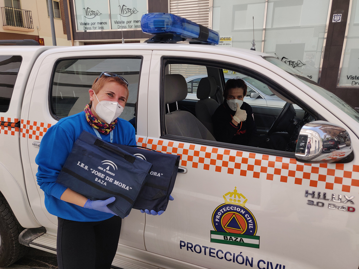 La distribución ha supuesto una organización compleja, en primer lugar para conocer el alumnado necesitado de los medios y, a continuación, para poder distribuirlos no sólo entre la localidad de Baza, sino también entre el alumnado que vive en Baúl, Freila, Zújar y Cúllar. En este cometido, coordinado por José Antonio Valero, se ha contado con el admirable trabajo del Servicio de Protección Civil de Baza y la ordenanza del centro, Mª Luz Bastidas. Gracias a ellos, ha sido posible la entrega en cada uno los domicilios de los alumnos. De esta forma podrán continuar con el aprendizaje telemático que nos ha impuesto el COVID-19 con los medios informáticos imprescindibles.