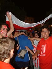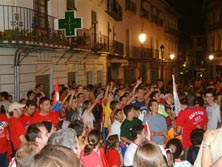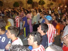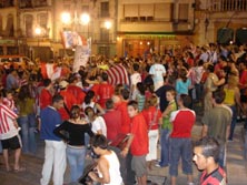 Rojiblancos que esperaban la fiesta en la Plaza Mayor