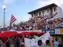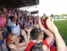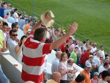 Banderas al viento, pancartas... hasta de la Dama, todos con una única tarea común: aupar al CD Baza hasta el triunfo final. |