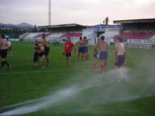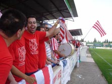 ... ante el que el CD Baza acabó imponiendo su juego y sus goles, logrando un 4-1 que hacía vibrar al más tranquilo de los espectadores, Presidente incluido |