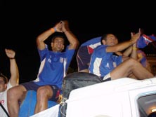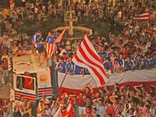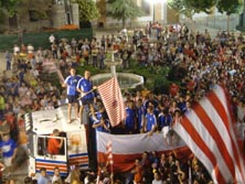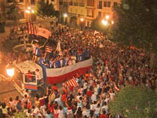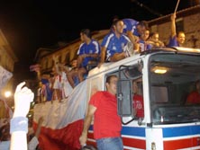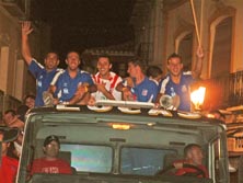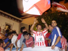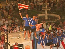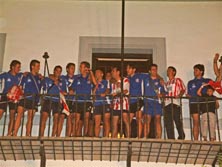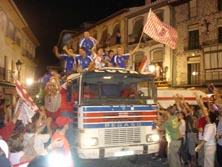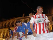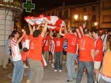 y la fiesta acabó transformándose en un homenaje mutuo, entre aficionados y equipo: jugadores, directivos, patrocinadores...