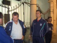 ... que da la paliza a sus jugadores, hasta que llega la tranquilidad tras la verja del Museo Municipal |