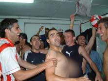 La fiesta acababa en el césped pero tendría su continuación. Para toda la plantilla... |