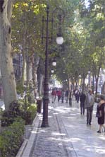 - El paseo central del parque debería pavimentarse a base de materiales tradicionales de calidad, que ejemplo, empedrados en los laterales y losetas de mármol gris, nunca de colores estridentes, verdes, rojos, amarillos. Ver fotografías nº 1 y 2.