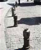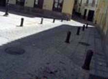 2.1.4. Pivotes. En la mayoría de los Conjuntos Históricos protegidos está prohibido el mobiliario urbano brillante, siguiendo siempre modelos tradicionales. Estamos en una ciudad histórica declarada B.I.C. y necesitamos mobiliario tradicional y artístico. ¿Cómo es posible que no estén permitidos los materiales brillantes o metalizados en fachadas y carpinterías al exterior y ahora nuestro ayuntamiento nos inunde el Conjunto Histórico con pivotes y posiblemente farolas y verjas (barandillas) del mismo metal…? Las ciudades declaradas B.I.C. que intervienen correctamente sus espacios públicos emplean mobiliario de corte tradicional y artístico con colores oscuros como Granada. ¿Les recuerda todo este desatino al mal gusto de los nuevos ricos hipnotizados, fascinados y abducidos por el brillo que encargan griterías plateadas o doradas? Vean en las fotografías que aportamos dos ejemplos de pivotes adecuados de dos ciudades andaluzas declaradas B.I.C. como Baza. Por cierto, fíjense en los adoquines rugosos de estas dos localidades, muchísimo más adecuados a una ciudad histórica protegida que los lisos (apenas se distinguen que son adoquines) que han colocado en la calle de las Monjas y ahora en Chorrillo, tema del que hablaremos en otro punto y en un artículo aparte. |