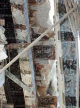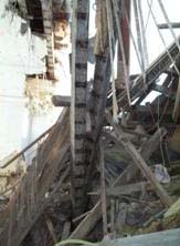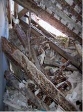 | Observen en primer lugar la esquina de una de las alas monacales, la ruina es total en las dos plantas. Miren después la parte caída en 2008. Bajo estos escombros tienen ustedes un magnífico alfarje policromado del Renacimiento, cubriéndose año tras año de agua y nieve. |