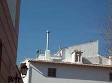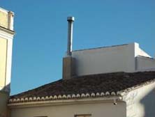 | Para que la chimenea se adapte a un edificio histórico tan sólo hay que cambiar su terminación. Es muy simple y poco costoso.