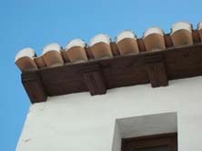 | En la correcta restauración e intervención de las cubiertas de casas catalogadas o en las de edificios de nueva planta dentro del Conjunto Histórico no debemos olvidar los aleros tradicionales en su color, ya sean de ladrillo o de madera en color caoba, color ya solicitado como obligatorio por el ayuntamiento de Baza en las carpinterías de mediados del siglo XX, cuando la concejalía de urbanismo y arquitecto municipal se preocupaban de que las intervenciones fuesen adecuadas. |