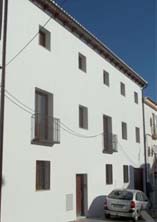La intervención de las fachadas ha puesto en valor todos sus elementos. Las carpinterías, incluido el alero, son de madera en color marrón oscuro, un elemento de vital importancia que se ha ejecutado convenientemente. De igual forma es importante destacar las soleras de los balcones con losetas a la vista de barro en su color, elemento destacado de la arquitectura tradicional bastetana. |