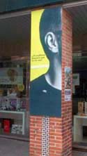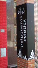 En esta vía nos podemos encontrar otros casos singulares como es el de los establecimientos situados en los bajos del bloque de pisos nº 5 : “Federopticos” y “Arte Peluqueros”… Sus letreros, además de ocupar parte de la fachada, tapan los pilares de los soportales donde se ubican, un error doble… |