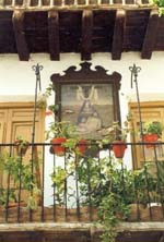 El cuadro de la Piedad o las Angustias de María La imagen de la Piedad fue una de las advocaciones marianas más representadas y veneradas en la urbe desde el siglo XVI como queda de manifiesto por dos grupos tallados en piedra dedicados a ésta, uno en la portada cegada de la colegiata y otro exento ubicado en el interior de dicho templo, cuya primitiva localización se desconoce y por la existencia de tres conventos bajo esta advocación, el de San Francisco, el los Jerónimos y el de la Merced, todos ellos fundaciones de los Enríquez y los Luna, familias que contribuyeron decisivamente a su difusión. La representación gráfica que aquí tratamos pertenece a un cuadro en mal estado de conservación colocado en el centro de la pared de la primera planta de la casa número 12 de la plaza de San Juan, cuerpo recorrido por una gran balconada de hierro. Ésta, como la de la segunda y tercera planta, debió ser en su origen de balaustres de madera y se sustituyó posiblemente en el último tercio del XVIII. La similitud entre el diseño de este balcón y el de la casa de Candeal en la placeta de la Magdalena, a pesar de algunas diferencias, señala una probable proximidad en la cronología y en la autoría de la ejecución de ambos. Puede que el cabildo municipal impusiera en la remodelación de este cuerpo de la casa un balconaje de hierro, al ser un material seguro, resistente e ignífugo, en sustitución del antiguo de madera, siguiendo la normativa aplicada en todas las ciudades durante el periodo de la Ilustración, el sustituir la madera de las fachadas. En cuanto a la devoción particular a la imagen de Nuestra Señora de las Angustias señalar que fue algo habitual en la Baza del siglo XVIII. Así, en 1761, el comerciante Lorenzo Fernández de Salas, oriundo de Zújar, junto con Manuel García Blanco, posiblemente su cuñado, donaron 990 reales a la cofradía y hermandad de la referida imagen en la ciudad de Granada fundada en 174l. En la sala principal de su casa tenía, entre otras láminas, una dedicada a esta advocación con marco dorado. Junto a esta devoción particular podemos señalar otra conventual en el monasterio de San Jerónimo con un ejemplar en talla. Se trata de un lienzo de autor desconocido al que los vecinos han profesado desde tiempo inmemorial una profunda devoción, convirtiéndose desde la Edad Moderna en una de las imágenes singulares que más identifican a nuestra ciudad. Un poco adusto en su hechura pero singular por su ubicación dentro de la red viaria. |