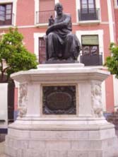 Para la realización de los proyectos escultóricos de la mencionada ruta proponíamos una serie de condiciones que se han cumplido en unos casos y en otros no. Recordémoslo pues se han cometido aciertos notables y errores de enorme calado: Pedestales. Siempre nos hemos pronunciado por modelos clásicos como el que pueden ver ustedes en la plaza de la Cruz de los Caídos, destacando entre las obras realizadas dentro de este proyecto el acertado diseño en el que se apoya la escultura de Cid Hiaya en la plaza sita junto a los baños de Santiago (podría haber sido más clásico) y señalar el desafortunado pedestal (con toda la parafernalia anexa) que soporta la estatua del abad Navarro en plaza de la Cascada. |