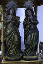 Las capitulaciones de la ciudad de Huéscar fueron muy generosas con los musulmanes que en dicha ciudad habitaban a consecuencia de la poca resistencia que éstos opusieron a las tropas castellanas. Ocho años más tarde, en 1496, don Fernando el Católico cedía la ciudad junto con sus tierras limítrofes a su cuñado, don Luis de Beaumont, conde de Lerín y condestable de Navarra, a la muerte de éste en 1508, Huéscar pasó a ser de nuevo realenga. A partir de 1512, Huéscar fue incorporada al señorío de la Casa de Alba, concretamente a don Fadrique Álvarez de Toledo. A esto debemos de añadir que en el plano religioso desde la Reconquista de Huéscar por los Reyes Católicos, ésta permaneció como Vicaría en algunas ocasiones, otras en Abadía; de la Sede Primada de Toledo hasta el Concordato del año 1953. Ciudad y tierra de señores, de rancio abolengo..., en la que la tierra estaba muy escasamente repartida puesto que debemos de tener en cuenta que las tierras comunales que pertenecían al concejo no eran suficientes para paliar y cubrir las grandes necesidades alimentarias de la población de la misma. Por ello, siguiendo a don Vicente González Barberán: “a raíz (...) de 1513, se enciende un permanente litigio por agravio contra la casa de Alba que hubo de durar prácticamente hasta la supresión del sistema señorial por las Cortes de Cádiz, en 1812”. Don Fadrique Álvarez de Toledo buscó a nuevos partidarios dentro de los anejos de Huéscar como por ejemplo fue en La Volteruela −actual Puebla de Don Fadrique− a la que otorgó una carta puebla, podemos considerar a este anejo como “el pueblo del duque” porque contaba con su protección señorial. Su época de mayor esplendor se dio durante el siglo XVIII que casi llegó a tener el mismo número de población que Huéscar, fue tras la retirada de los franceses después de la Guerra de la Independencia cuando la Puebla de Don Fadrique conseguiría su tan anhelado villazgo. En cuanto al origen de la veneración a las Santas Nunilón y Alodía podemos saber que fueron dos mártires de Osca (probablemente el territorio de la actual Huesca provincia de Aragón). No nos ha de sorprender que en aquella época que Huesca estaba muy unida al Reino de Navarra y siendo el primer señor de Huéscar el condestable de Navarra como hemos visto anteriormente, importara a la tierra de Huéscar la devoción por las Santas Nunilón y Alodía que había sido muy próspera en Navarra y en Huesca. Éstas fueron llevadas a martirio, según Eulogio de Córdoba, el 22 de octubre del 851. Muy posteriormente podemos ver que en el año 1580 La Puebla de Don Fadrique declara por día de fiesta el de las Santas: En 1603 ya se venera en la Sagra a las Santas, canalizándose el culto por la cofradía existente en Huéscar: La rebelión de los Moriscos en la Guerra de las Alpujarras en 1570 contribuyó a que se reforzase aún más en la población la devoción a las Santas. Como dato curioso podemos aportar siguiendo el trabajo del profesor Pulido Castillo que las Santas se hubieron de tallar nuevas en el año 1800 porque las que había en el siglo XVI estaban ya muy deterioradas, éstas del siglo XIX fueron restauradas en 1902 por los talleres de “Hijos de Miguel Gusi” en Barcelona. Podemos señalar también, cómo en 1912 “... A petición de las autoridades civiles y eclesiásticas oscenses, el Obispo de Lérida, don Juan Antonio Ruano Martín, concedió a la parroquia de Santa María unas partículas de los restos mortales de las Santas Alodía y Nunilón, tomadas de los conservados en Adahuesca”. En la actualidad la festividad de las Santas es la más importante tanto en Huéscar como en la Puebla de Don Fadrique. Como hemos apuntado anteriormente su celebración litúrgica en Huéscar se realiza el 22 de octubre haciéndose coincidir con la feria de dicho pueblo. Este día se celebra una Misa solemne en honor a las Santas Nunilón y Alodía, y en los últimos años se viene celebrando un triduo en su honor. |