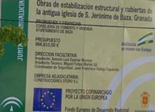 La asociación “Baza Histórica” felicita a la Consejería de Fomento, y los políticos de IU que la dirigen, por el inicio de restauración de la iglesia San Jerónimo, una inversión de 966.810 euros. Esta vez sí es verdad. Ya han comenzado las obras. Nuestra iglesia se va a salvar gracias a unos políticos que están haciendo cumplir la Ley del Patrimonio. Desde aquí dar las gracias al portavoz municipal de IU por recordar en prensa la labor fundamental de la asociación “Baza Histórica” y de la “Mesa por el Patrimonio”, por señalar que sin nuestro “trabajo incansable esta rehabilitación probablemente nunca habría sido una realidad”. Llevamos veinte años de lucha diaria.Por fin se restaura la iglesia de San Jerónimo. Por fin vemos unos plásticos tapando las cubiertas de las capillas laterales. |