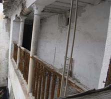 La reciente intervención ha recuperado la planta baja del patio del palacio episcopal (y otras dependencias), en estado ruinoso hasta hace pocos meses. Sería deseable que las intervenciones se extendiesen a la rehabilitación del resto del edificio: fachada, dependencias de las tres plantas y jardín episcopal, la mayoría en un estado delicado de conservación tras décadas de abandono y la entrada contante de agua tras las lluvias, provocando recalos en las cubiertas de varias plantas y en la galería principal del patio como pueden apreciar en las siguientes imágenes. |