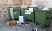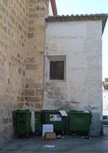 1. Contenedores junto a monumentos desplazados a lugares cercanos La mayoría de los contenedores que había junto a monumentos están siendo desviados hacia calles cercanas, dejándoles el mal aspecto y los malos olores a otros vecinos. Tras nuestras denuncias sobre la mala imagen que aportaban los contenedores a la vista situados frente a la casa del Tesorero en la plaza de la Cruz Verde, los adosados al palacio del Infantado en la calle de las Monjas o los ubicados junto al palacio de los marqueses de Cadimo en la plaza de Santo Domingo, el ayuntamiento los desvió y concentró en la calle Corredera, primero cerca de la casa de los marqueses de Cadimo y pasadas unas semanas unos metros más abajo. |