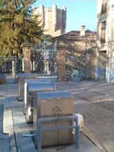 Ignoramos que pasará con los contenedores a la vista situados en los lugares que están siendo intervenidos (placeta de la Cava Alta…), si los dejarán donde están sin soterrar, los desviarán a otra vía o plaza o los soterrarán como se hace en la mayoría de las ciudades históricas que se preocupan por un patrimonio 2.1. Un caso espectacular. Los contenedores junto a la capilla mayor de la iglesia de la Merced Uno de los casos más escandalosos es el grupo de tres contenedores situados junto a la cabecera de la iglesia de la Merced, |