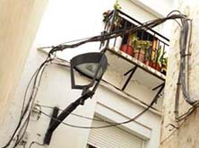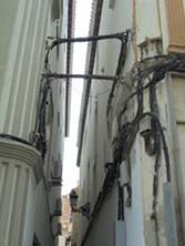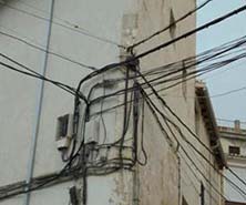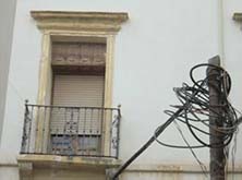 El cableado inundando todos los barrios hitóricos de la ciudad protegida La mayoría de las calles y plazas de la ciudad histórica están inundadas de cableado, un ejemplo vergonzoso de cómo no ha de estar una población historica protegida como BIC. Hoy presentaremos algunos ejemplos y a partir de este momento realizaremos un estudio más detallado y profundo de los distintos barrios de la ciudad. Baza centro El centro de nuestra ciudad está inundado de magníficos ramilletes de cableado, un ejemplo clarisimo de cómo no ha de estar una ciudad monumental. |