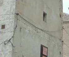 Torre de las Cinco Esquinas. Además de presentar un estado ruinoso luce cableado por todas sus fachadas. Cuando se pavimentó la calle Zapatería hubiera sido el momento de soterrar el cableado y suprimirlo de las fachadas. Esta asociación lo pidió pero el ayuntamiento miró para otro lado. Como si con él no fuera. |