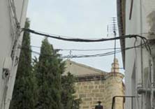 Baza de Santiago Aparte del cableado en la plaza de Santiago y vías anexas, todo el barrio está cuajado de este significativo elemento distorsionante, como es la confluencia entre el callejón de Pedro Carmona y la calle del Agua. |