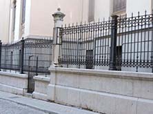 | Igualmente proponemos que la verja que delimitaría todo este espacio de la vía pública se haga con gran esmero y calidad, tanto en los materiales constructivos como en el diseño artístico (pilares, rejería) siguiendo un modelo clásico como el de las fotografías adjuntas. |