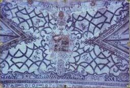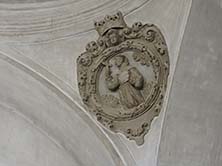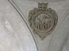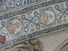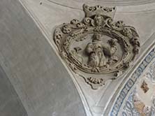 El arco toral del crucero, abierto a la capilla mayor, se cubre con una banda encintada que forma cruces y medallones con motivos lauretanos de gran valor plástico. |