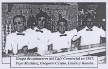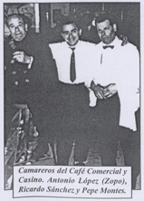 | Pasaron muchos y muy buenos camareros por esta café,; entre ellos recordamos a José Martínez Sánchez (Pepe), Ricardo Sánchez, Pepe Redondo, Pepe Montes, Antonio Roda, Pepe Sánchez, a los que en ferias y fiestas se les unían otros compañeros tanto de Baza como de Granada. |